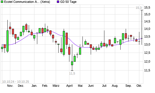 Mit dem Rücksetzer auf 12,90 EUR hat die Ecotel Communication-Aktie am 09.10.2025 die 50-Tage-Linie nach unten gekreuzt.