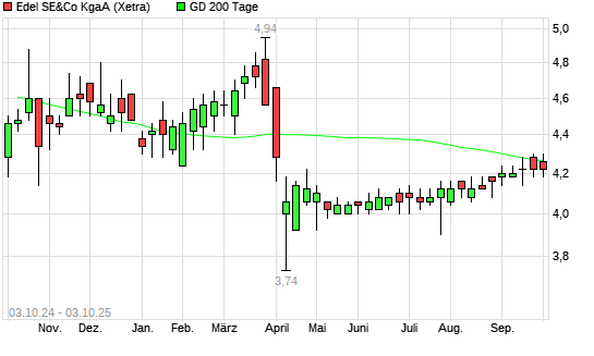 Mit dem Anstieg auf 4,22 EUR hat die Edel-Aktie am 02.10.2025 die 200-Tage-Linie nach oben gekreuzt.