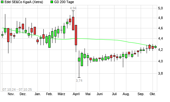Mit dem Anstieg auf 4,40 EUR hat die Edel-Aktie am 06.10.2025 die 200-Tage-Linie nach oben gekreuzt.