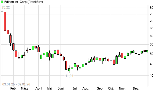 Mit dem Anstieg auf 51,86 EUR hat die Edison International-Aktie (ISIN US2810201077) am 02.01.2026 ein neues 6-Monats-Hoch erreicht und damit den Kurs vom 27.11.2025 eingestellt.