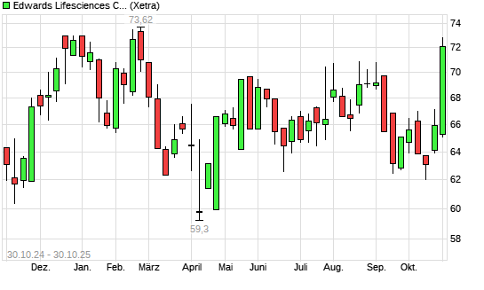 Mit dem Anstieg auf 70,82 EUR hat die Edwards Lifesciences-Aktie (ISIN US28176E1082) am 29.10.2025 ein neues 6-Monats-Hoch erreicht und damit den Kurs vom 28.10.2025 eingestellt.