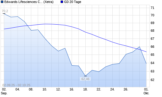 Mit dem Rücksetzer auf 65,21 EUR hat die Edwards Lifesciences-Aktie am 01.10.2025 die 20-Tage-Linie nach unten gekreuzt.