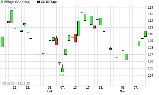 Mit dem Anstieg auf 110,90 EUR hat die Eiffage-Aktie am 11.11.2025 die 50-Tage-Linie nach oben gekreuzt.