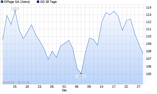 Mit dem Rücksetzer auf 108,85 EUR hat die Eiffage-Aktie am 27.10.2025 die 38-Tage-Linie nach unten gekreuzt.