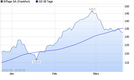 Mit dem Rücksetzer auf 133,15 EUR hat die Eiffage-Aktie am 18.03.2026 die 38-Tage-Linie nach unten gekreuzt.