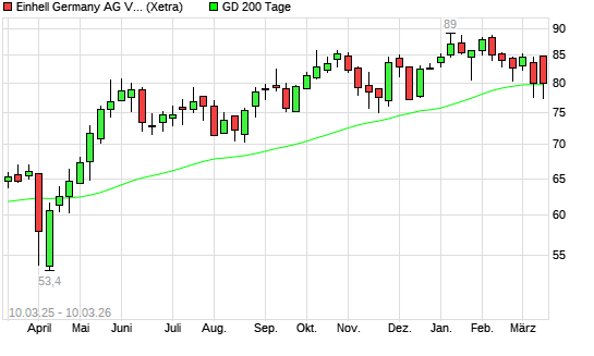 Mit dem Anstieg auf 81,20 EUR hat die Einhell Germany-Aktie am 09.03.2026 die 200-Tage-Linie nach oben gekreuzt.