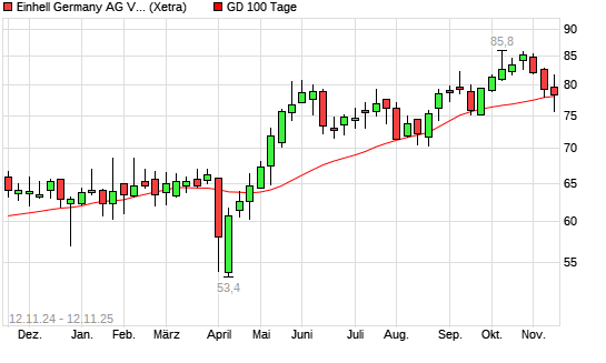 Mit dem Rücksetzer auf 76,90 EUR hat die Einhell Germany-Aktie am 11.11.2025 die 100-Tage-Linie nach unten gekreuzt.