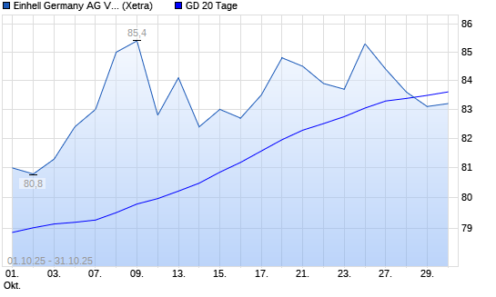 Mit dem Rücksetzer auf 82,20 EUR hat die Einhell Germany-Aktie am 30.10.2025 die 20-Tage-Linie nach unten gekreuzt.