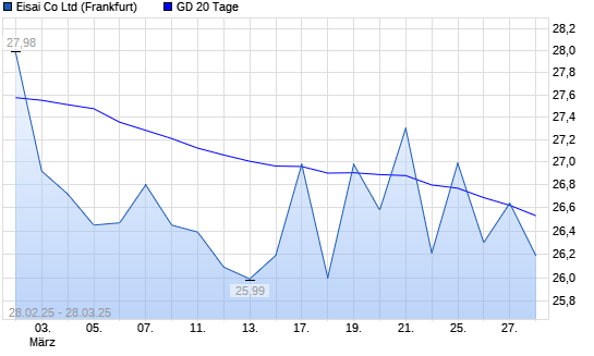 Mit dem Anstieg auf 26,64 EUR hat die Eisai-Aktie am 27.03.2025 die 20-Tage-Linie nach oben gekreuzt.