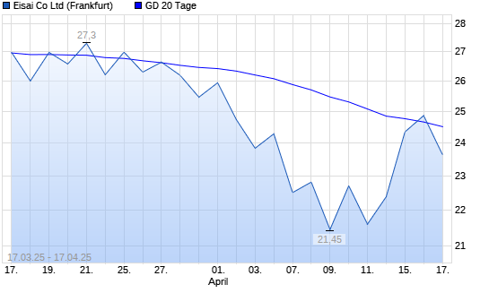 Mit dem Anstieg auf 24,86 EUR hat die Eisai-Aktie am 16.04.2025 die 20-Tage-Linie nach oben gekreuzt.