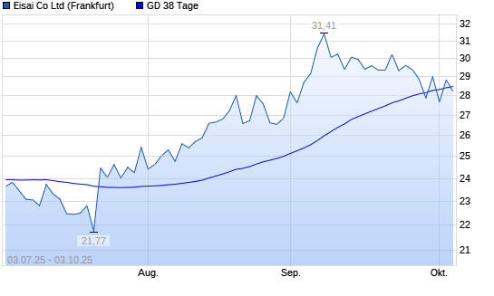 Mit dem Anstieg auf 28,84 EUR hat die Eisai-Aktie am 02.10.2025 die 38-Tage-Linie nach oben gekreuzt.