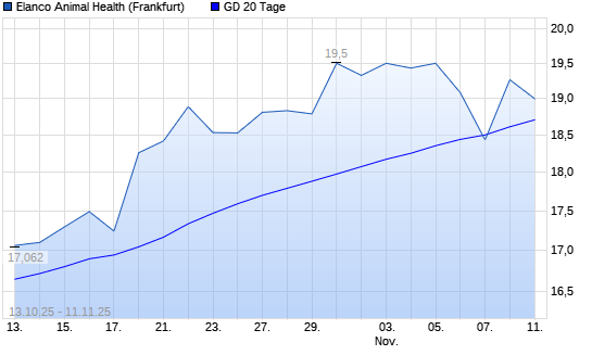 Mit dem Anstieg auf 19,30 EUR hat die Elanco Animal Health-Aktie am 10.11.2025 die 20-Tage-Linie nach oben gekreuzt.