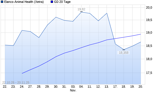 Mit dem Anstieg auf 19,21 EUR hat die Elanco Animal Health-Aktie am 21.11.2025 die 20-Tage-Linie nach oben gekreuzt.