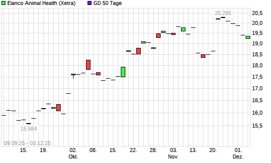 Mit dem Rücksetzer auf 18,55 EUR hat die Elanco Animal Health-Aktie am 04.12.2025 die 50-Tage-Linie nach unten gekreuzt.