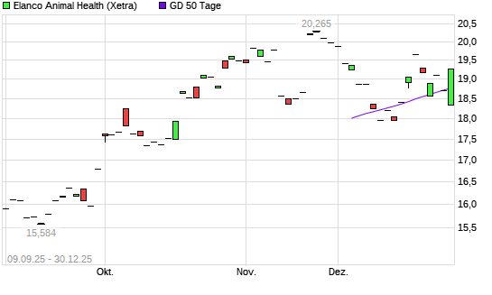 Mit dem Anstieg auf 19,12 EUR hat die Elanco Animal Health-Aktie am 29.12.2025 die 50-Tage-Linie nach oben gekreuzt.Die Elanco Animal Health-Aktie befindet sich seit dem 27.05.2025 im langfristigen ...weiterlesen