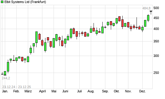 Mit dem Anstieg auf 474,80 EUR hat die Elbit Systems-Aktie (ISIN IL0010811243) am 22.12.2025 ein neues All-Time-High erreicht und damit den Kurs vom 19.12.2025 eingestellt.