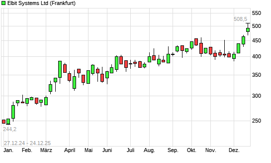 Mit dem Anstieg auf 482,00 EUR hat die Elbit Systems-Aktie (ISIN IL0010811243) am 23.12.2025 ein neues All-Time-High erreicht und damit den Kurs vom 22.12.2025 eingestellt.