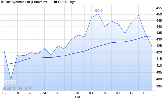 Mit dem Rücksetzer auf 430,00 EUR hat die Elbit Systems-Aktie am 15.10.2025 die 20-Tage-Linie nach unten gekreuzt.