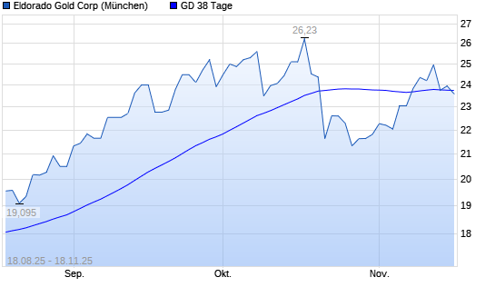 Mit dem Rücksetzer auf 23,64 EUR hat die Eldorado Gold-Aktie am 17.11.2025 die 38-Tage-Linie nach unten gekreuzt.
