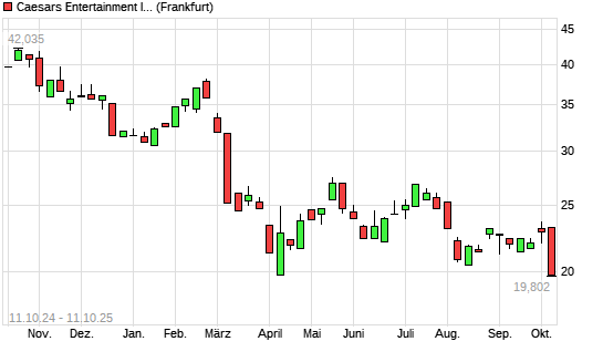 Mit dem Rücksetzer auf 19,80 EUR hat die Eldorado Resorts-Aktie (ISIN US12769G1004) am 10.10.2025 ein neues 5-Jahres-Tief erreicht und damit den Kurs vom 09.10.2025 eingestellt.