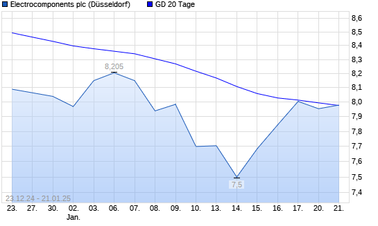 Mit dem Anstieg auf 7,98 EUR hat die Electrocomponents-Aktie am 20.01.2025 die 20-Tage-Linie nach oben gekreuzt.