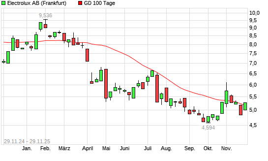 Mit dem Anstieg auf 5,29 EUR hat die Electrolux B-Aktie am 28.11.2025 die 100-Tage-Linie nach oben gekreuzt.