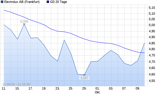 Mit dem Anstieg auf 4,85 EUR hat die Electrolux B-Aktie am 10.10.2025 die 20-Tage-Linie nach oben gekreuzt.