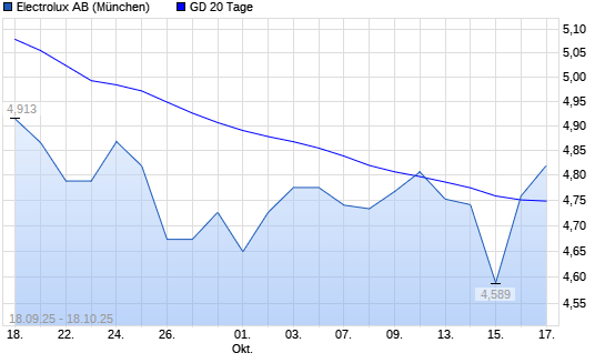 Mit dem Anstieg auf 4,81 EUR hat die Electrolux B-Aktie am 17.10.2025 die 20-Tage-Linie nach oben gekreuzt.