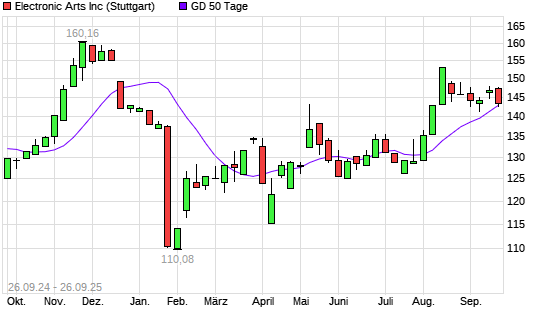 Mit dem Rücksetzer auf 142,20 EUR hat die Electronic Arts-Aktie am 25.09.2025 die 50-Tage-Linie nach unten gekreuzt.