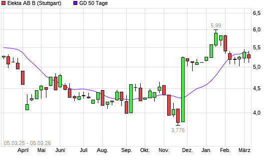 Mit dem Anstieg auf 5,28 EUR hat die Elekta B-Aktie am 04.03.2026 die 50-Tage-Linie nach oben gekreuzt.