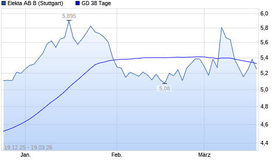 Mit dem Rücksetzer auf 5,15 EUR hat die Elekta B-Aktie am 18.03.2026 die 38-Tage-Linie nach unten gekreuzt.