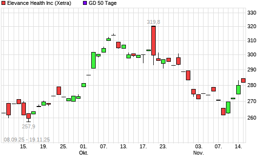 Mit dem Anstieg auf 284,20 EUR hat die Elevance Health-Aktie am 18.11.2025 die 50-Tage-Linie nach oben gekreuzt.