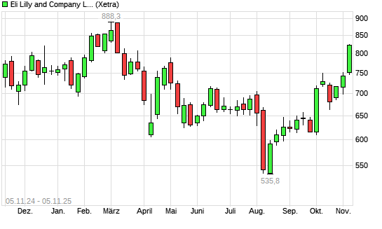 Mit dem Anstieg auf 784,20 EUR hat die Eli Lilly-Aktie (ISIN US5324571083) am 04.11.2025 ein neues 6-Monats-Hoch erreicht und damit den Kurs vom 03.11.2025 eingestellt.