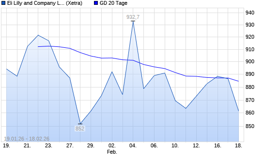 Mit dem Rücksetzer auf 880,40 EUR hat die Eli Lilly-Aktie am 17.02.2026 die 20-Tage-Linie nach unten gekreuzt.