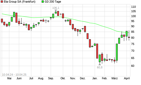 Mit dem Anstieg auf 86,20 EUR hat die Elia System Operator-Aktie am 09.04.2025 die 200-Tage-Linie nach oben gekreuzt.