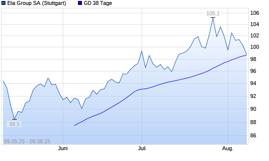 Mit dem Rücksetzer auf 98,55 EUR hat die Elia System Operator-Aktie am 08.08.2025 die 38-Tage-Linie nach unten gekreuzt.