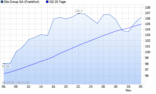 Mit dem Anstieg auf 105,20 EUR hat die Elia System Operator-Aktie am 04.11.2025 die 20-Tage-Linie nach oben gekreuzt.Die Elia System Operator-Aktie befindet sich seit dem 11.04.2025 ...weiterlesen