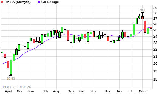 Mit dem Anstieg auf 25,68 EUR hat die Elis Ord Shs-Aktie am 18.03.2026 die 50-Tage-Linie nach oben gekreuzt.