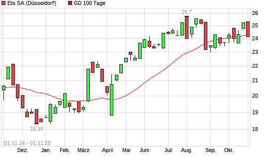 Mit dem Rücksetzer auf 24,22 EUR hat die Elis Ord Shs-Aktie am 31.10.2025 die 100-Tage-Linie nach unten gekreuzt.