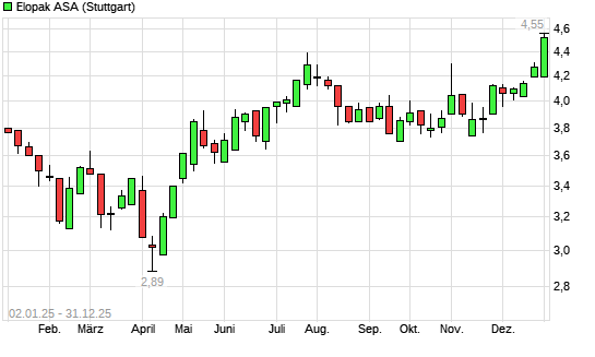 Mit dem Anstieg auf 4,55 EUR hat die Elopak-Aktie (ISIN NO0011002586) am 30.12.2025 ein neues All-Time-High erreicht und damit den Kurs vom 29.12.2025 eingestellt.
