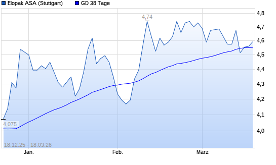 Mit dem Rücksetzer auf 4,49 EUR hat die Elopak-Aktie am 17.03.2026 die 38-Tage-Linie nach unten gekreuzt.