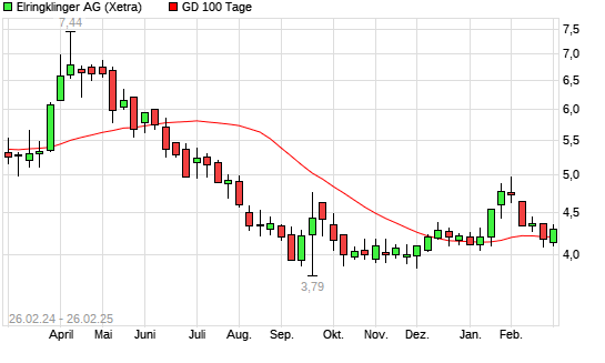 Mit dem Anstieg auf 4,22 EUR hat die Elringklinger-Aktie am 25.02.2025 die 100-Tage-Linie nach oben gekreuzt.