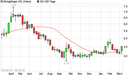 Mit dem Anstieg auf 4,29 EUR hat die Elringklinger-Aktie am 05.03.2025 die 100-Tage-Linie nach oben gekreuzt.
