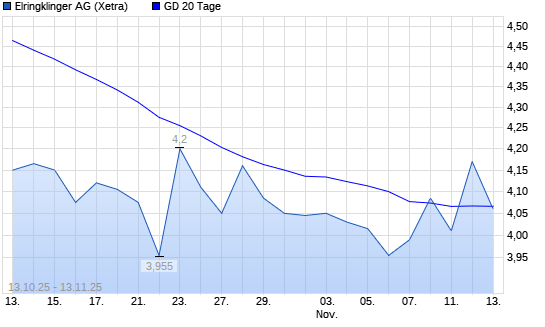 Mit dem Anstieg auf 4,20 EUR hat die Elringklinger-Aktie am 12.11.2025 die 20-Tage-Linie nach oben gekreuzt.