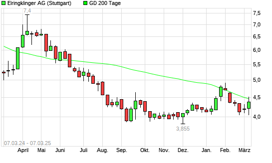 Mit dem Anstieg auf 4,54 EUR hat die Elringklinger-Aktie am 06.03.2025 die 200-Tage-Linie nach oben gekreuzt.