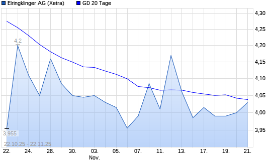 Mit dem Rücksetzer auf 3,90 EUR hat die Elringklinger-Aktie am 21.11.2025 die 20-Tage-Linie nach unten gekreuzt.