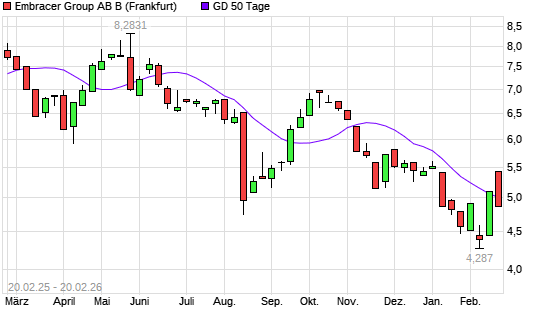 Mit dem Rücksetzer auf 4,92 EUR hat die Embracer Group-Aktie am 19.02.2026 die 50-Tage-Linie nach unten gekreuzt.