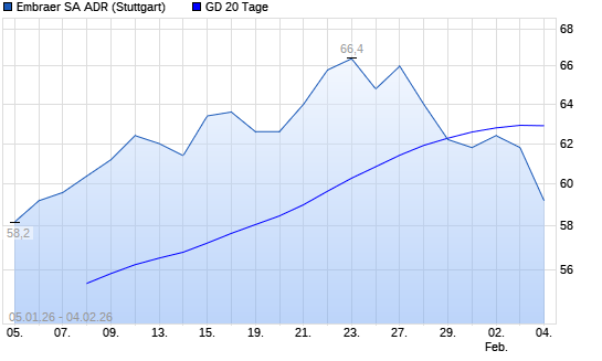 Mit dem Anstieg auf 62,40 EUR hat die Embraer SA ADR-Aktie am 03.02.2026 die 20-Tage-Linie nach oben gekreuzt.