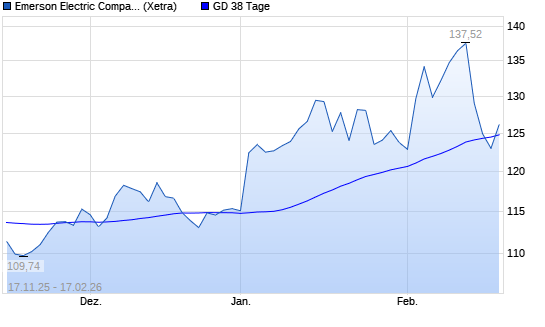 Mit dem Anstieg auf 124,96 EUR hat die Emerson Electric-Aktie am 16.02.2026 die 38-Tage-Linie nach oben gekreuzt.