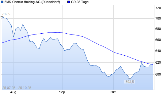 Mit dem Anstieg auf 620,50 EUR hat die Ems-Chemie Holding-Aktie am 24.10.2025 die 38-Tage-Linie nach oben gekreuzt.